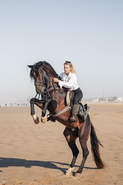 Petit déjeuner. Préparation des chevaux. Nous partirons en balade sportive sur les plages et découvrirons les dunes et la nature sauvage environnante. Après un galop libérateur sur la plage, nous arriverons à une jolie maison d'hôtes à Sidi Kaouki pour le déjeuner. Nous pourrons alors profiter d’une après-midi détente au bord de la piscine. C'est aussi le moment idéal pour apaiser vos muscles endoloris avec un massage, merci de vous renseigner lors de la réservation.
